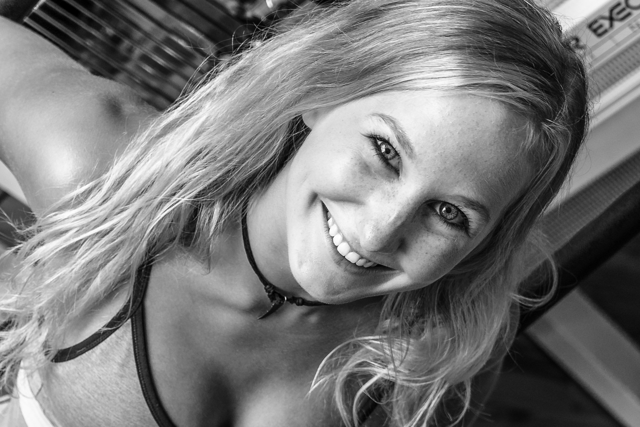 …ist Sportlerin, und wenn sie in ihren Sportklamotten vor der Kamera steht, ist sie voll in ihrem Element. Wie so oft beim Fotografieren im Studio kann es passieren, dass jemand mit Erfahrung vor der Kamera ins Posen verfällt, aber da steuere ich gerne auch mal aktiv dagegen, zugunsten von Bildern, die das wahre Ich zeigen. Die richtige Musik kann auch sehr helfen. Was das betrifft, haben Alexandra und ich uns auf Hans Zimmer eingeschossen. Seine Musik inspiriert uns beide gleichermaßen und immer wieder, und sie entlockt uns großartige Ergebnisse. (🔗 Alexandra auf Instagram)