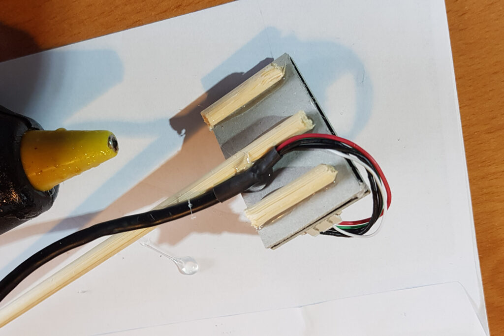 - Einen Holzstab (wahlweise auch Kunststoff oder Metall, sollte aber an Heißkleber gut haften)