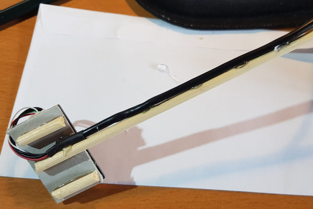 Ich habe meine Lösung so gebaut, dass ich die Höhe der Aufhängung verstellen kann. So kann ich die Webcam wahlweise am 15″-Laptop oder am 32″-Monitor betreiben. Wenn du nur einen Computer bzw. Bildschirm hast, brauchst du die Hohenverstellung nicht.